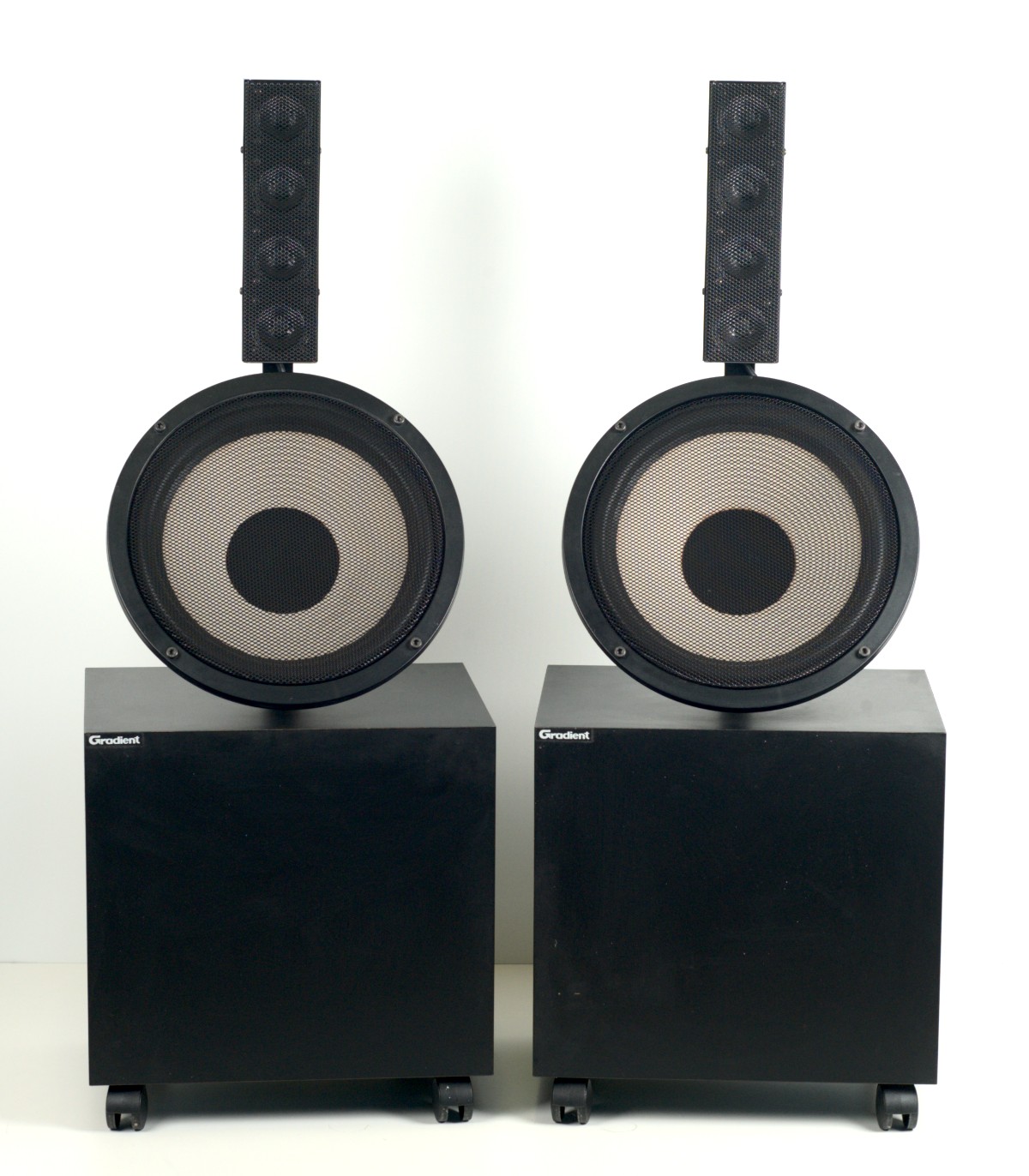A Gradient 1.2 pair is for sale, having just undergone a full factory service. The surrounds of the midrange drivers have been replaced, and the speakers have been fitted with a Seas aluminium-cone bass driver. This particular pair features midrange drivers manufactured by the French company Audax.